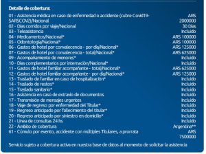 Asistencia Médica en caso de enfermedad o accidente (cubre Covid19-SARSCOV2)/Nacional – HASTA **$2.000.000 ARS en la Argentina.