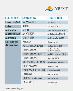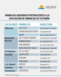 Ahora nuestros afiliados pueden adquirir sus medicamentos en las farmacias pertenecientes a la Asociación de Farmacias de Tucumán ( AFARTUC), Red de farmacias Del Pueblo y Plazoleta.