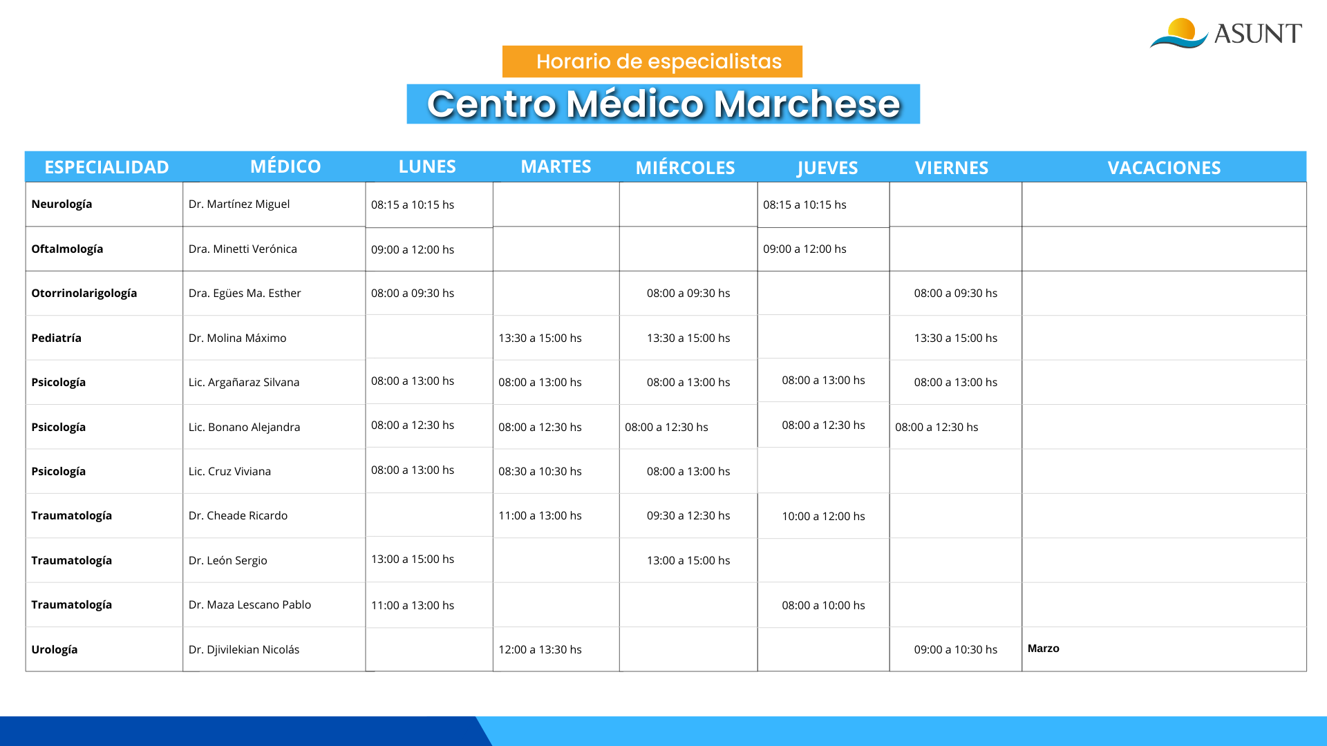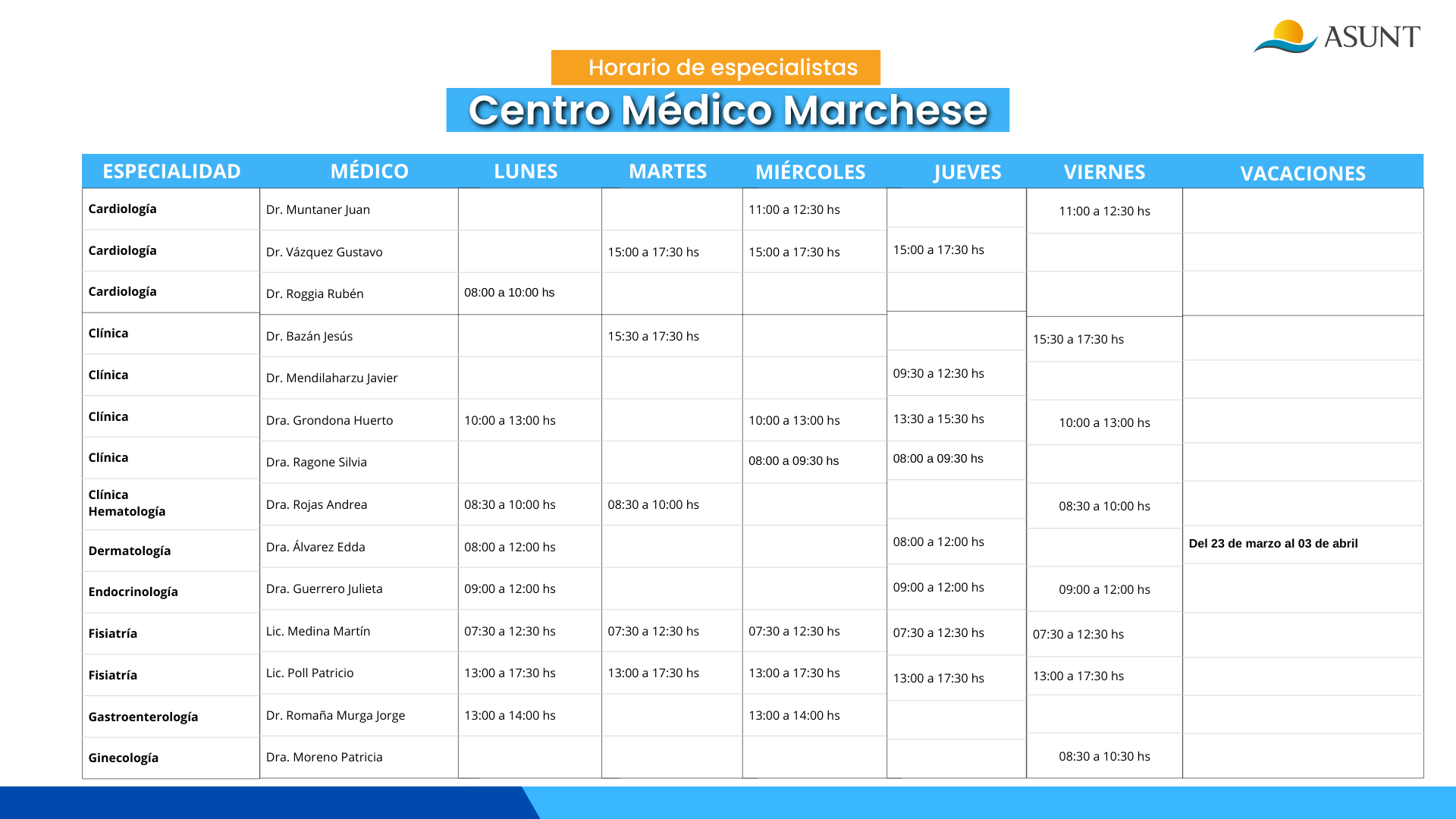 Se informa que los afiliados del interior de la provincia y las personas con discapacidad, tienen la posibilidad de solicitar turnos por teléfono para los especialistas del Centro Médico Marchese.